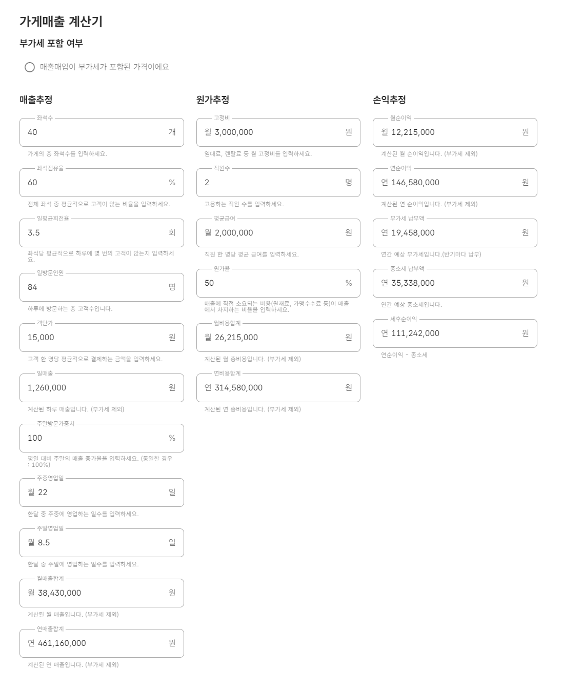 사업할 때 꼭 필요한 가게 매출 계산기